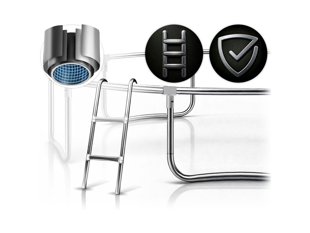 Díky použití vysoce kvalitní oceli jsme zajistili, že tento žebřík nabízí maximální odolnost proti poškození a všem povětrnostním vlivům, což z něj činí investici na mnoho sezón. Pevné a stabilní stupně poskytují bezpečné madlo při každém výstupu. Dejte sbohem vratkým provizorním řešením a vsaďte na kvalitu a rychlou montáž pro bezstarostné letní dny plné zábavy. Upozorňujeme: Tato nabídka zahrnuje pouze žebřík k trampolíně, nikoli celou trampolínu.