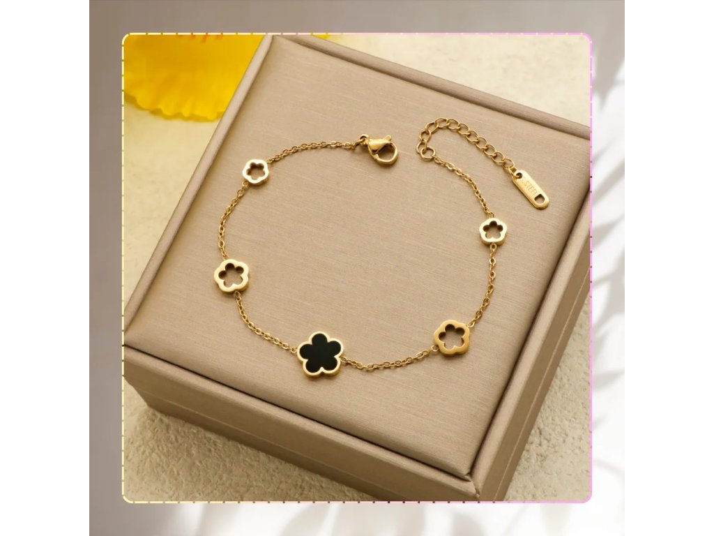 Tento kousek nezaujme jen designem, ale také praktickými vlastnostmi, které z něj činí ideální volbu pro ženy s citlivou pletí. Je hypoalergenní a odolný vůči nepříznivému počasí, korozi a rzi, takže si můžete být jisté, že zůstane krásný po dlouhou dobu. Květinový motiv s černými prvky dodává náramku zvýšenou eleganci, což vám umožní kombinovat ho s různými styly od teplých svetrů až po letní šaty. Nenechte si ujít možnost obohatit svou šperkovnici o tento krásný kousek, který se stane vaším oblíbeným doplňkem.
